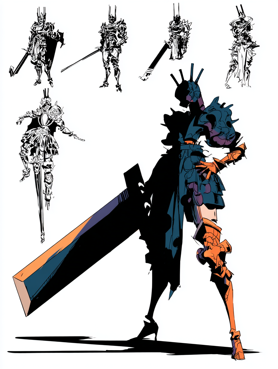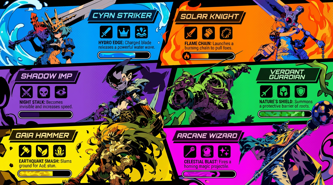 I was responsible for character concept design, silhouette language, and visual identity, focusing on high-contrast shapes, bold color blocking, and gameplay readability inspired by SuperGiant’s Hades.